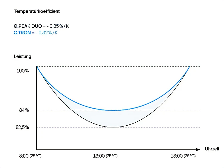 Q.TRON behält seine hohe Leistung selbst bei hohen Temperaturen bei.